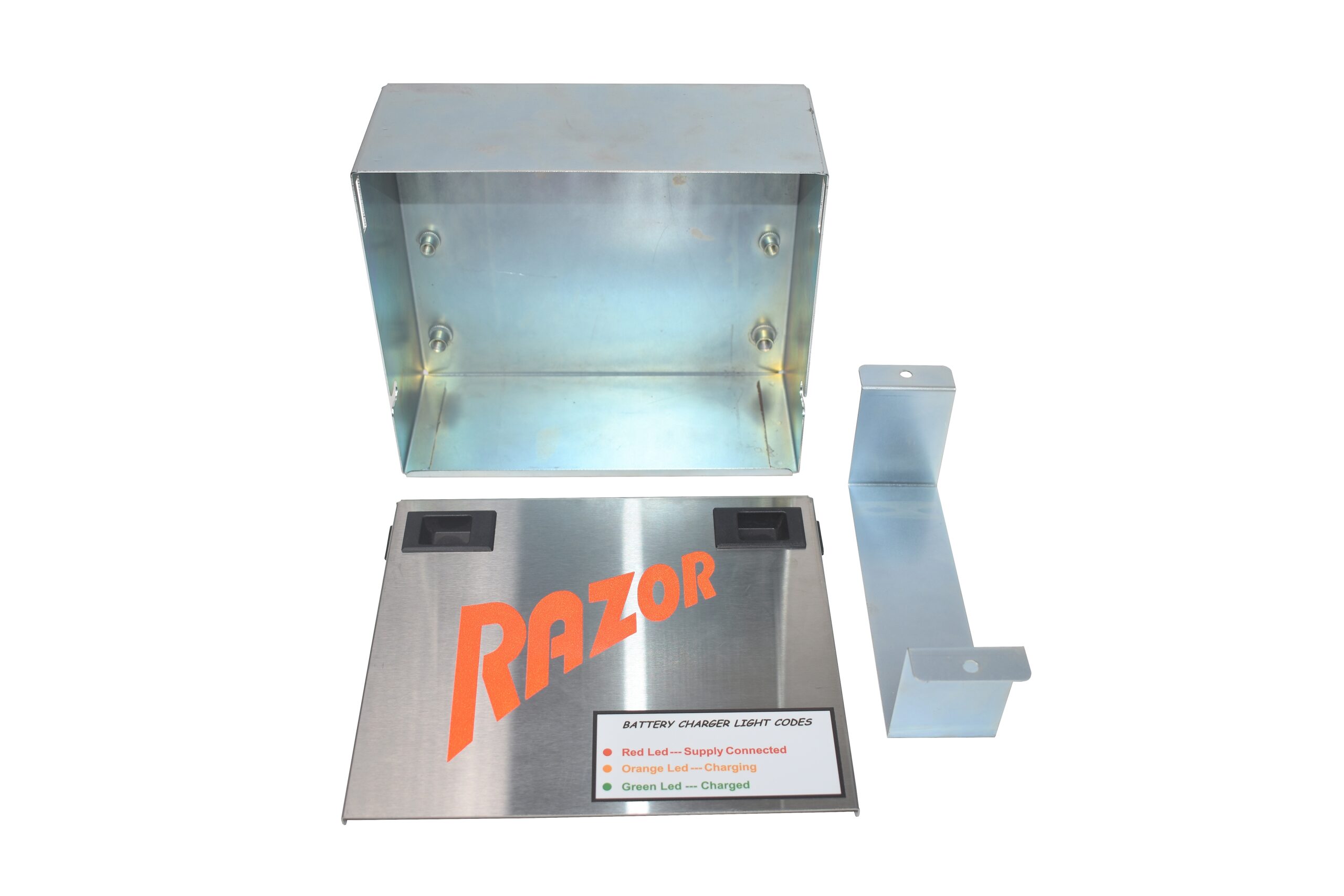 The Metal Battery Kit was used for the original RAZOR Systems pre-2014, this does not include a RAZOR charger.